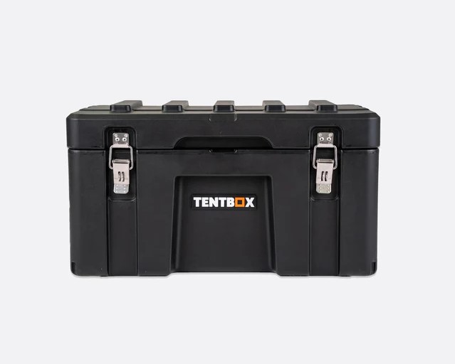 TentBox Chuck Box: Eine robuste Aufbewahrungsbox für deine TentBox-Abenteuer – einfach in den Kofferraum deines Autos werfen und los geht’s! Sie ist so stabil, dass du darauf stehen kannst (ideal zum Schließen deines Dachzelts) und eignet sich perfekt als zusätzlicher Sitzplatz am Lagerfeuer. Die Box ist vollgepackt mit praktischen Funktionen wie einem Organizer im Deckel, Befestigungskanälen und einem nützlichen Flaschenöffner. Dank der wasserdichten Versiegelung bleibt deine Ausrüstung vor den Elementen geschützt, und die abschließbaren Stahlriegel bieten zusätzliche Sicherheit. Außerdem ist sie stapelbar.